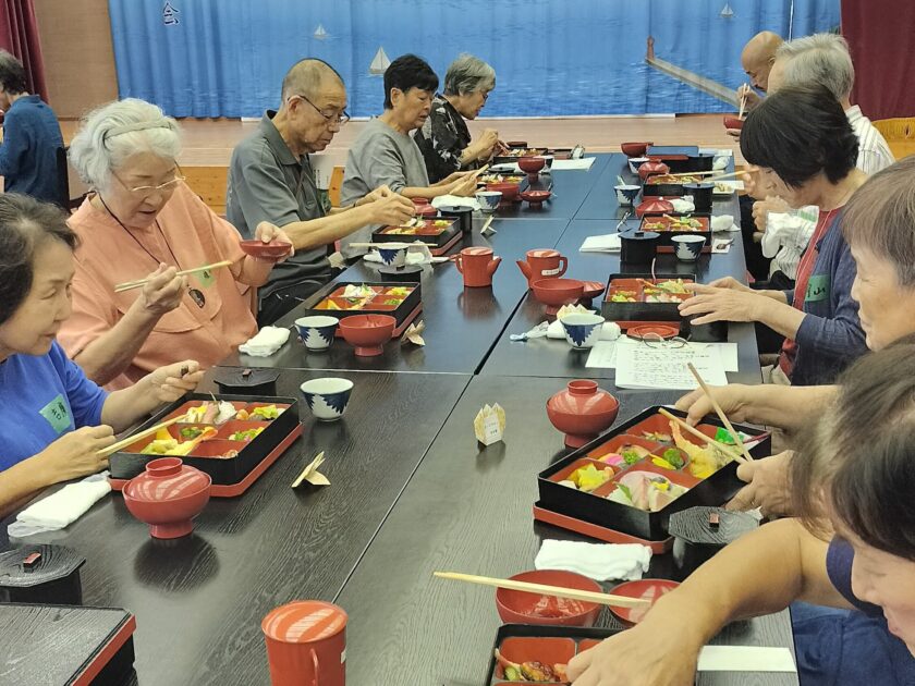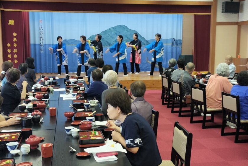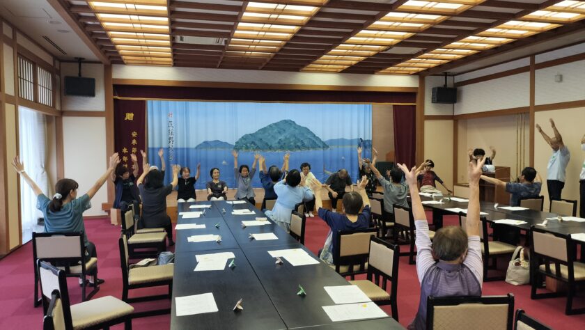この交流会は毎年行われており、なんと!今年は12回目を迎えました。久しぶりに会う方も多く、「元気だったかね~」と話が弾んでおられました。体操で体をほぐしたら、お昼ごはんを食べられ、伯太音頭の鑑賞やみんなでコーラスなど。盛りだくさんの一日でした。
