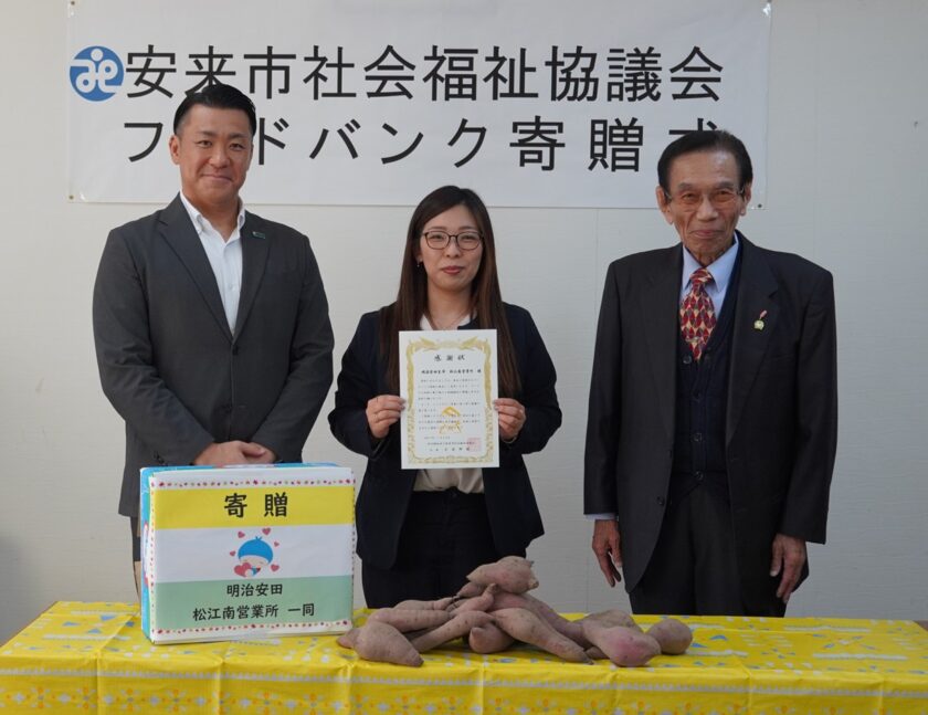 明治安田生命松江営業所様より、昨年に引き続きさつま芋”紅はるか”をご寄贈いただきました。